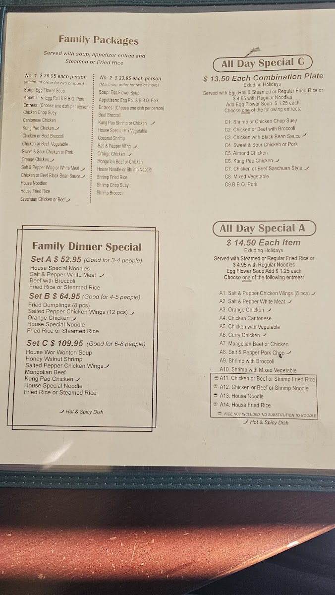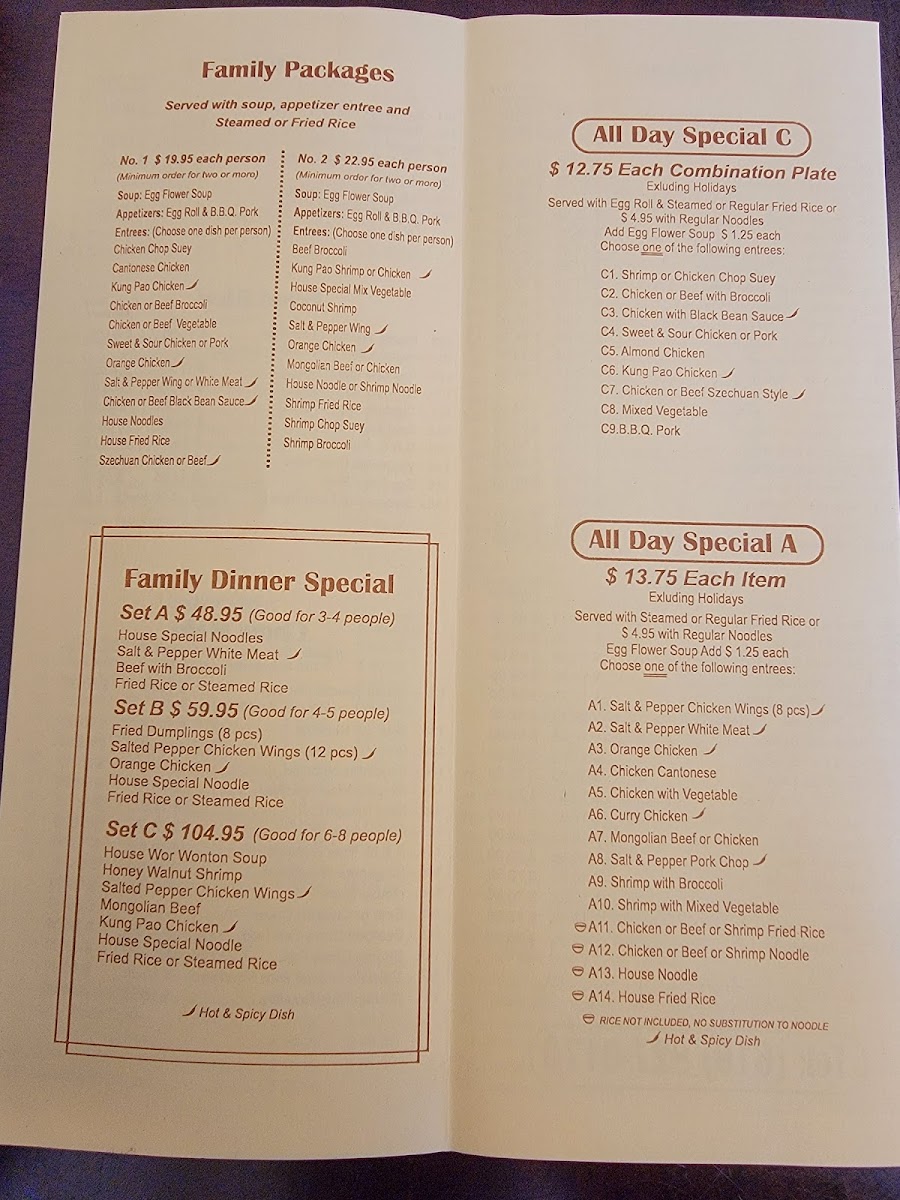 The menu at Golden Mandarin offers a thoughtfully composed selection of classic Chinese dishes that cater to both casual lunches and relaxed dinners. The style is approachable and comforting, featuring familiar favorites alongside hearty house specials that invite sharing and savoring in a warm, unpretentious setting.