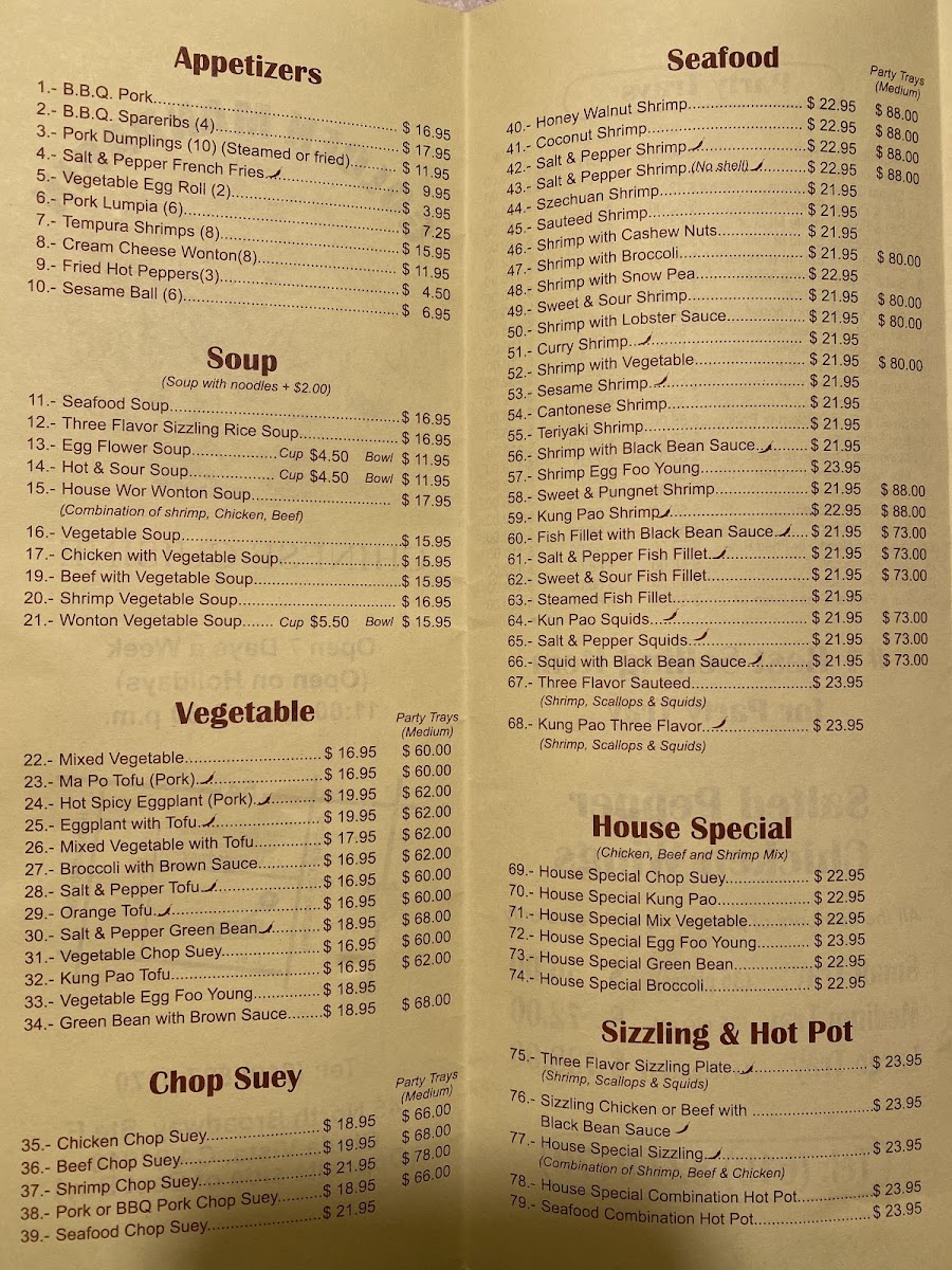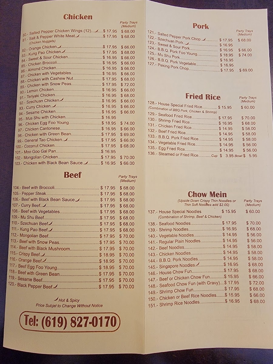 Enjoy bites like crispy chicken wings or tender orange chicken, which make for satisfying starters or a flavorful complement to any meal. For those seeking a balanced option, dishes such as house special fried rice or beef broccoli with white rice provide a fulfilling and straightforward choice. Light soups like egg flower or hot & sour create a gentle opening to the meal or a soothing accompaniment on cooler evenings.